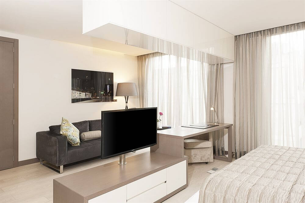 Los apartamentos disponen de dormitorio amplio, cocina totalmente equipada y zona de estar. También incluyen armario grande y terraza compartida con vistas a la ciudad.