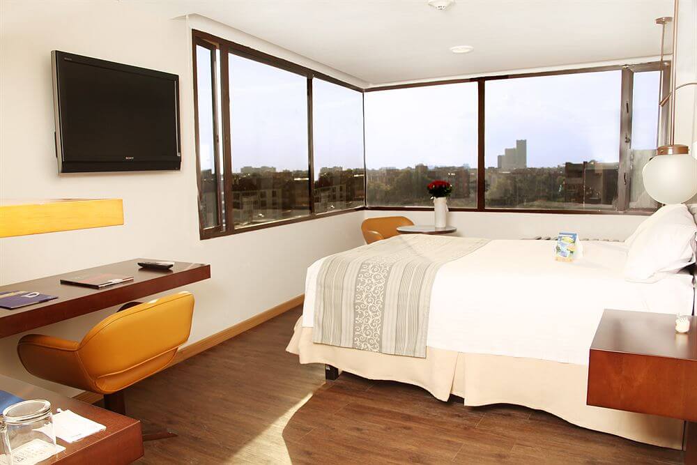Ubicado al norte de la ciudad sobre una de las más importantes avenidas del sector, cerca a los mejores centros comerciales y la dinámica vida metropolitana de la noche, a 30 minutos del aeropuerto internacional El Dorado. Standard (tarifario) – Junior – Junior Suite. El hotel tiene 95 habitaciones, todas con fax, TV por cable, equipo de sonido con CD, minibar, servicio de Internet, vidrios antirruido, cerraduras con tarjeta electrónica. Sauna, baños turcos y gimnasio. Derecho a ingresar al Country Club Pueblo Viejo para disfrutar de su deporte favorito. “Solarium” Barra Café, cinco salones para eventos con capacidad máxima hasta de 400 personas, parqueadero privado.