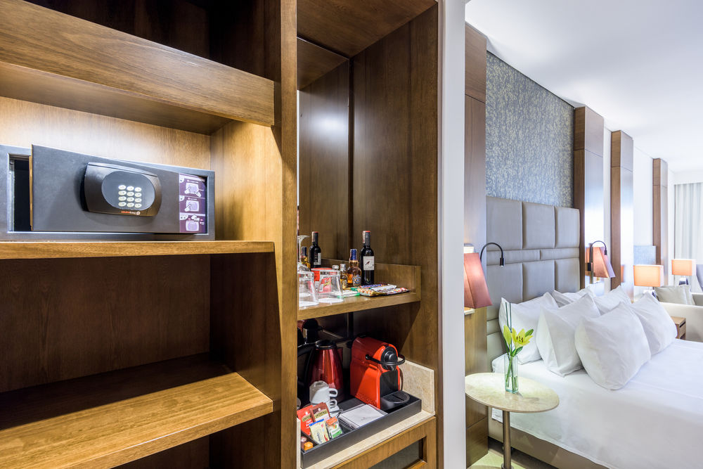 Superior (tarifario) - Business Suite - Royal Suite – Pre¬sidencial Suite. Esta moderna torre de 14 pisos, decorado con un lujo exquisito, cuenta con 251 amplias habitaciones dotadas con TV por cable, radio despertador, teléfono, baño en mármol privado con tina, secador de pelo, mini bar, nevera, cajilla de seguridad, acceso a Internet, periódico diario, escritorio y dataport, sofá cama, opción habitación No fumadores.