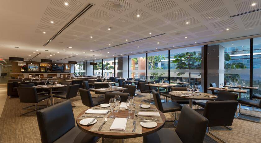 Todas las mañanas se sirven café colombiano y frutas tropicales en la zona de desayunos, de diseño minimalista.