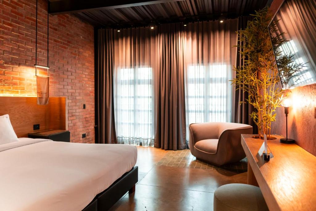 The undeniable artistic personality of THE ART HOTEL MEDELLÍN can be admired in the art gallery integrated with vegetation that fills the lobby with life, as well as in the exposed brick and polished concrete structure that gives the building a singular charm. Nature combined with art.